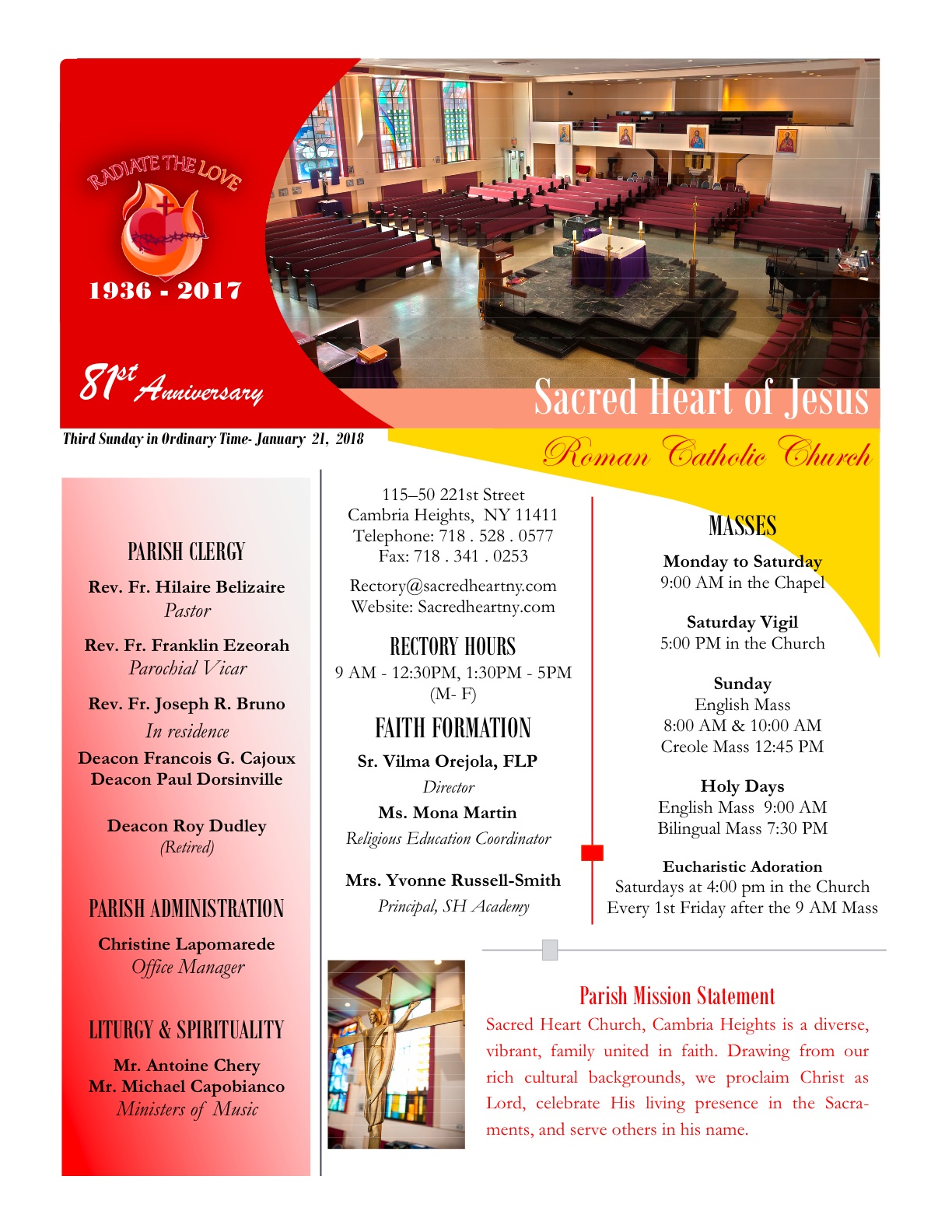 Sacred Heart Roman Catholic Church, Cambria Heights is a vibrant community united in faith that engages in celebrating the ongoing presence of Christ, evengelizing persons, families, culture to the gospel of Jesus Christ, serving all peoples in His name.